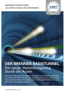 www.bbt-se.com DER BRENNER BASISTUNNEL Ein neuer Verbindungsweg durch die Alpen Unter dem Brennerpass entsteht die längste unterirdische Eisenbahnverbindung der Welt. Der Brenner Basistunnel wird dem Güterverkehr eine attraktive Alternative bieten und dem Personenverkehr eine neue Dimension des Reisens eröffnen. BRENNER BASISTUNNEL GALLERIA DI BASE DEL BRENNERO